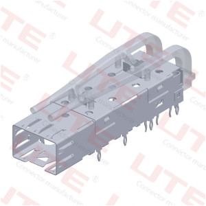 SFP Cage , 2X4 Port,φ0.60mm ,With Light Pipe,Press-Fit Type 1611.D032.04400